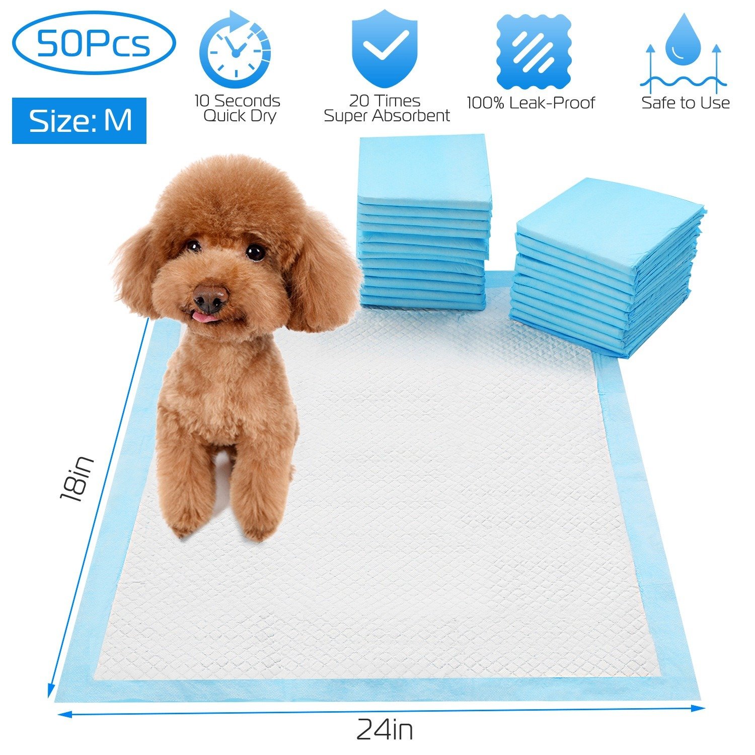 *Safe to Use and Anti-Scratch*:Made of soft non-woven fabric,non-toxic and comfortable to pee on. Measuring 24’’(L)*18’’(W),this pet pads is great for puppies or kittens. The diamond-shape and tough surface design is resistant to your pets’ scratch and bite,durable to use.