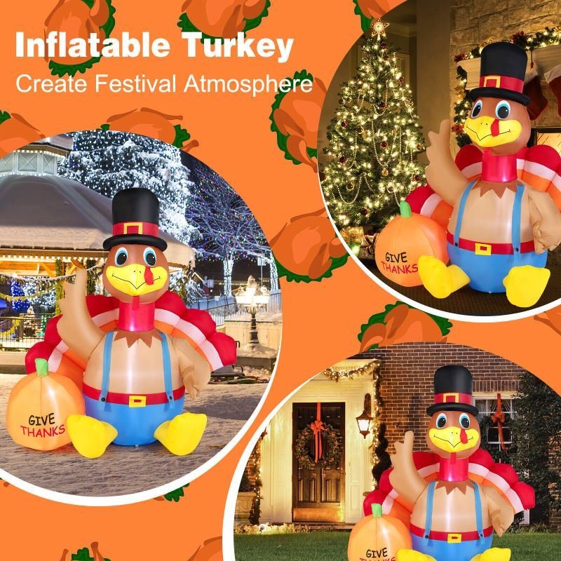 6 FT Thanksgiving Inflatable Turkey Harvest Day Decoration for Lawn w/Lights