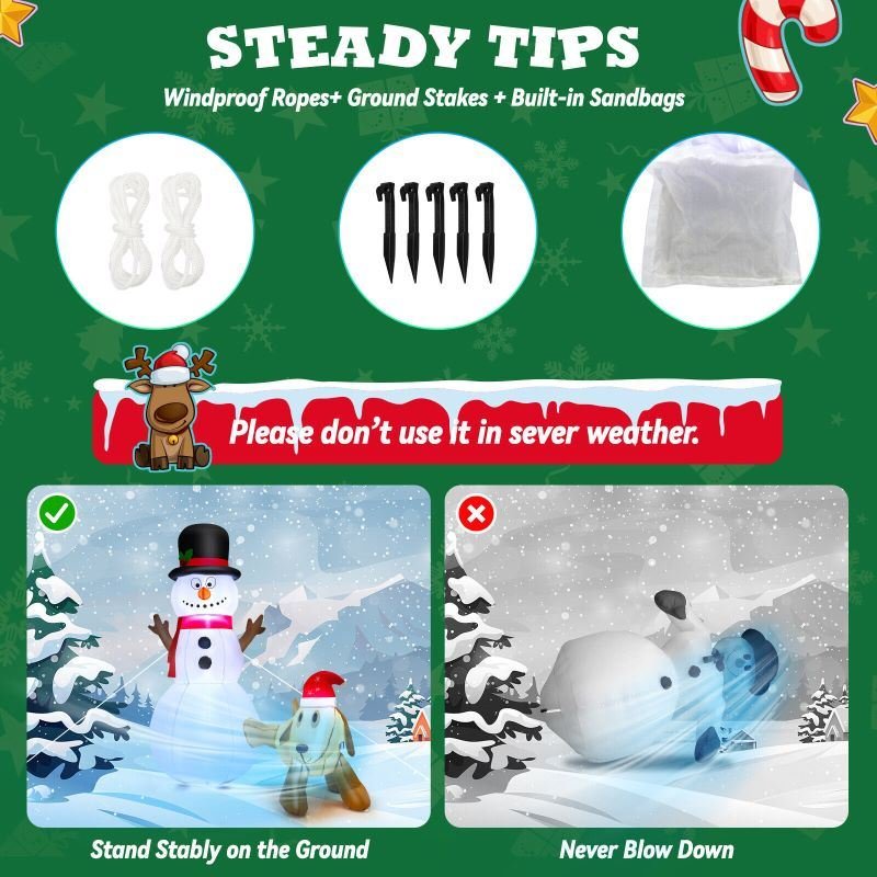 5.Lovely snowman and dog make a funny Christmas decoration 4 built-in LED lights to attract kids' and guest's attention
