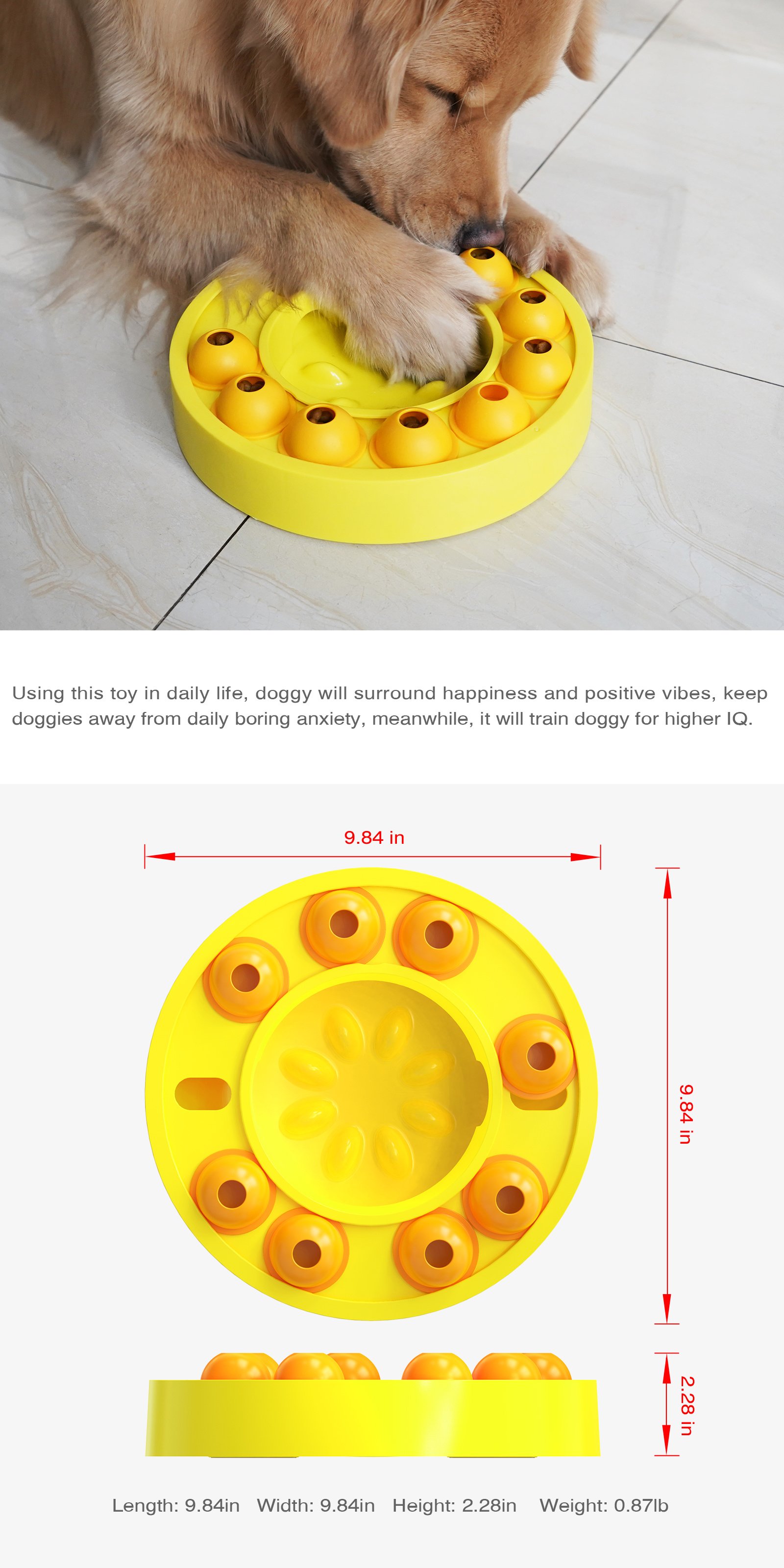 Specifications: Blue; Green; yellowSize Information:Size: Length: 250mm Width: 250mm Height: 58mmPacking list:Pet food bowl toy*1
