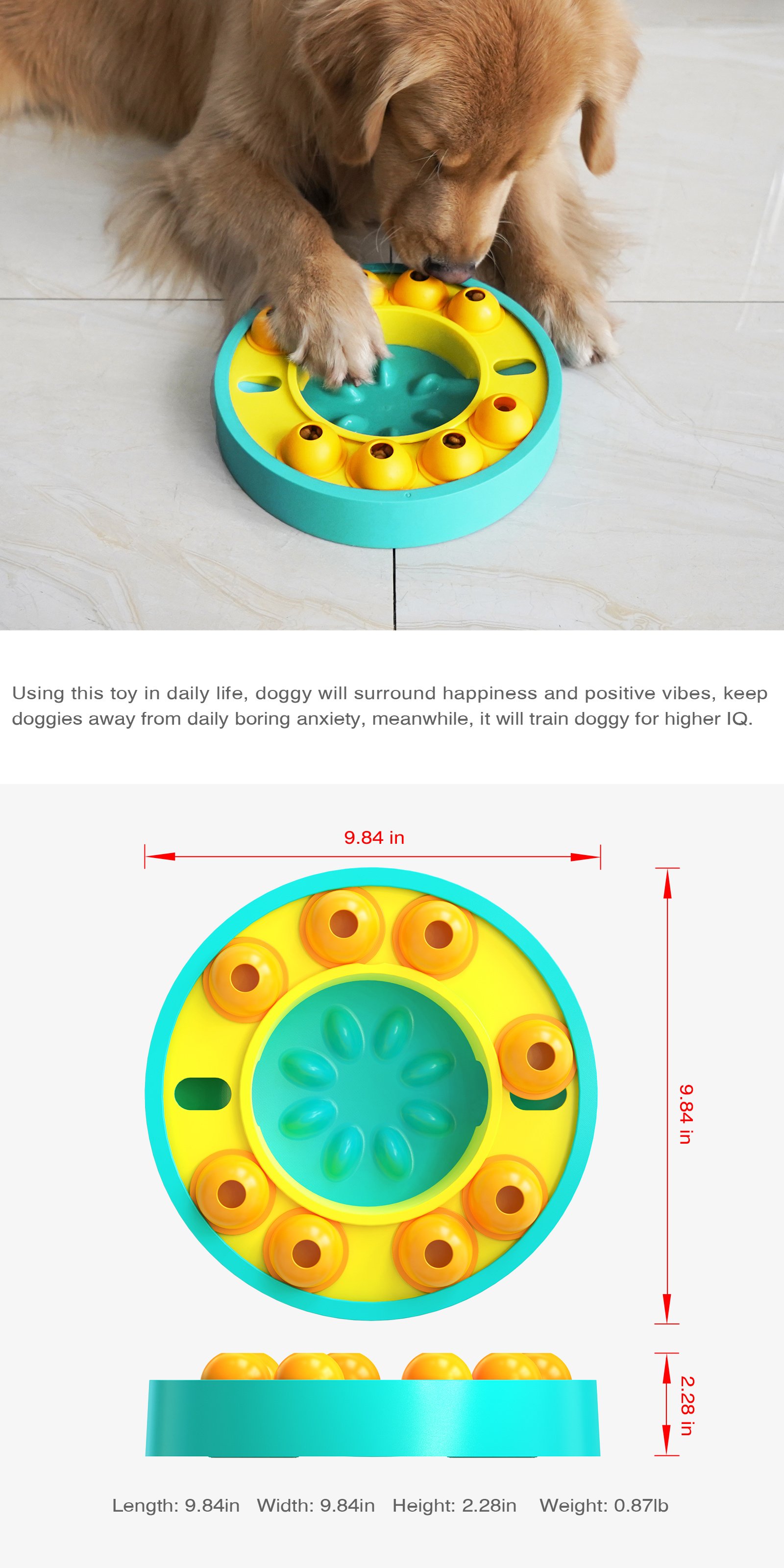 Specifications: Blue; Green; yellowSize Information:Size: Length: 250mm Width: 250mm Height: 58mmPacking list:Pet food bowl toy*1