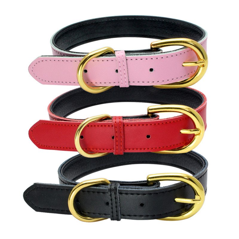 Design: Our dog collar with leather style grain and rich attractive colors to create the perfect combination of durability and design aesthetics. SUFEI leather dog collar is a perfect combination of style; high quality and comfort. These leather collars for all breeds are comfortable; lightweight; pliable and elegant
