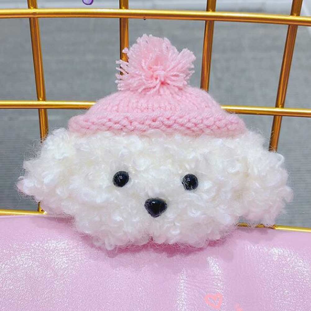 Home > Lovely White Dog Pink Hat Plush Silicone Wireless Headphone Case Knitted Wireless Bluetooth Earbuds Headphones Case