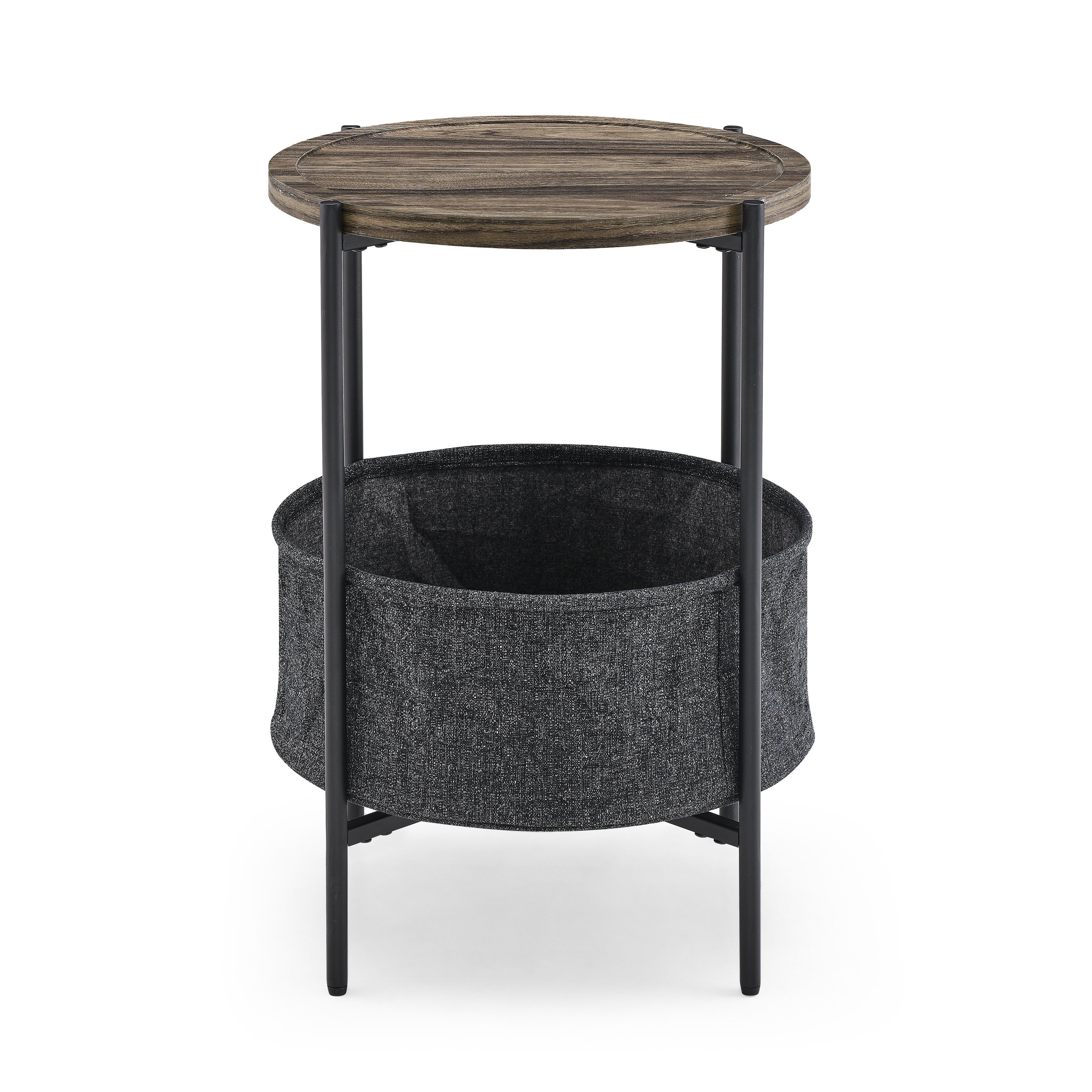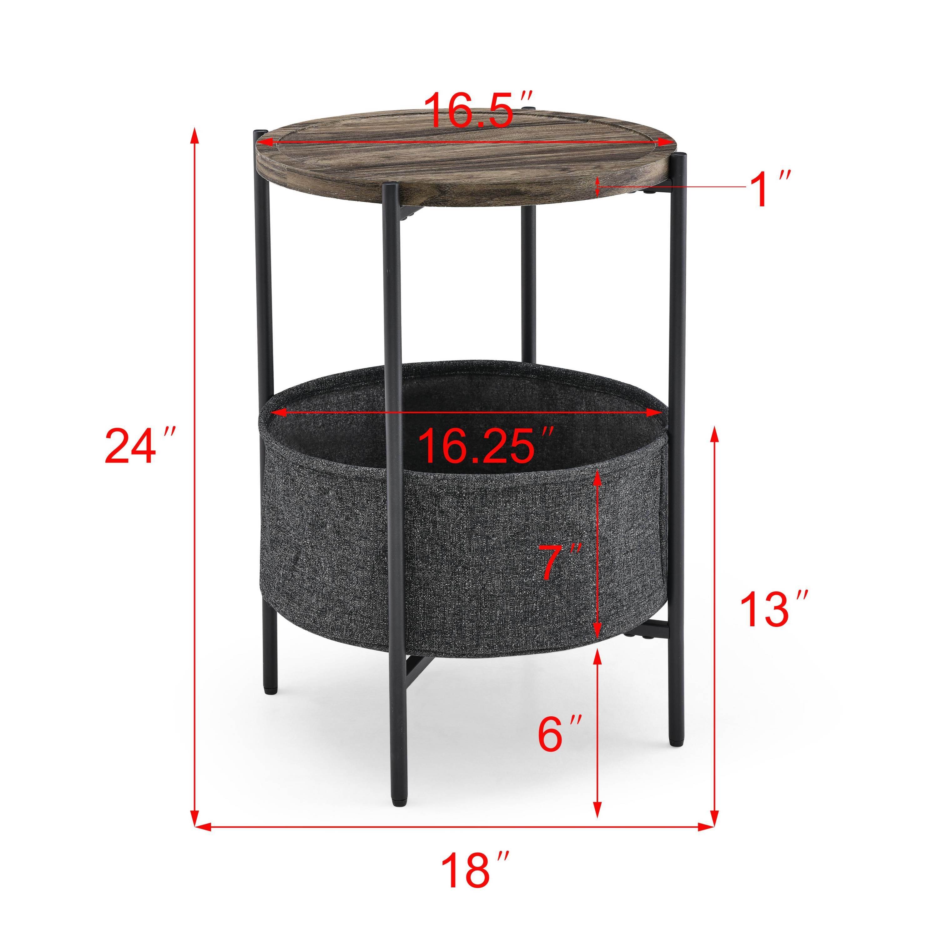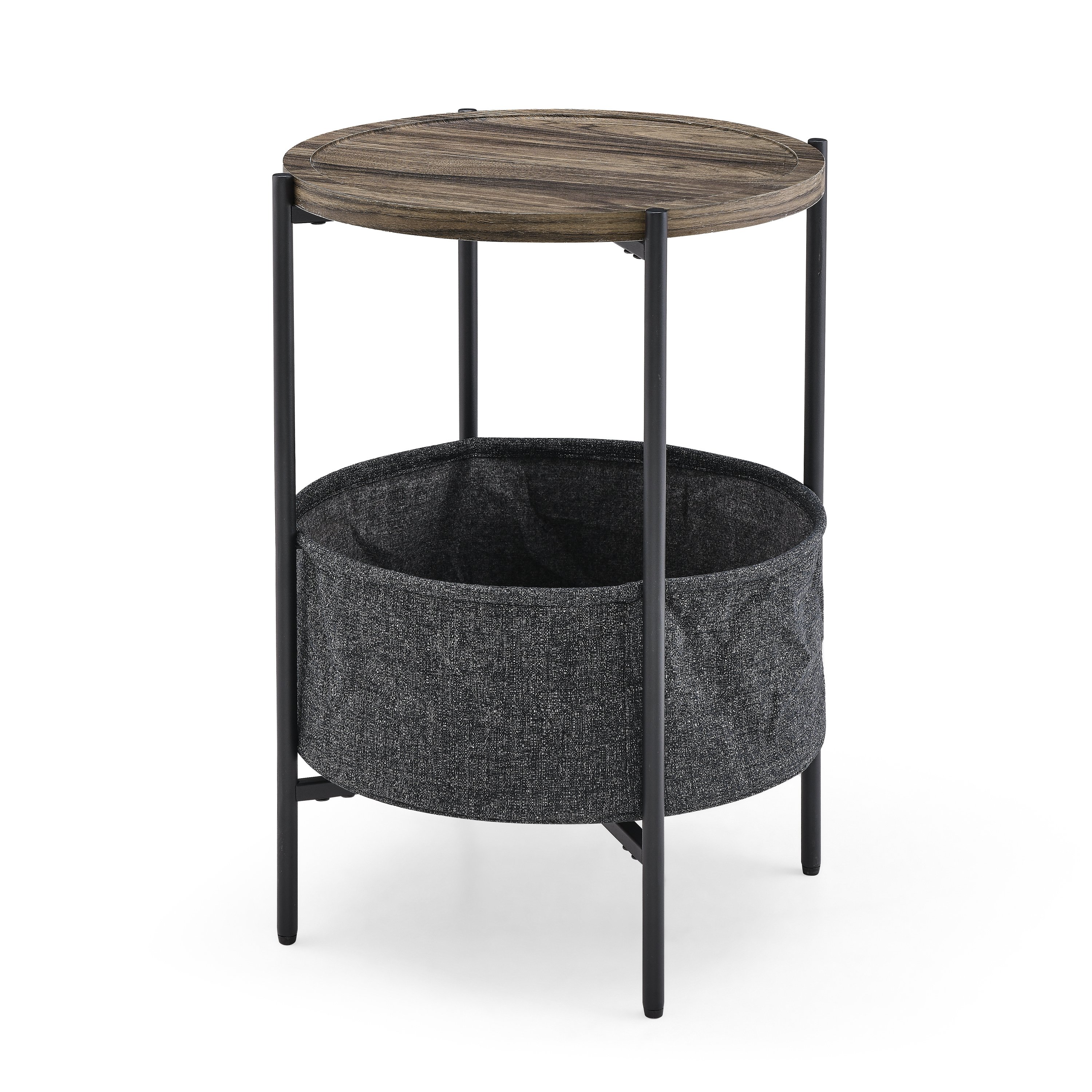 Home > Modern Accent End Table with Storage Basket, Grey Cloth Bag and Brown Top (18'x18'x24')