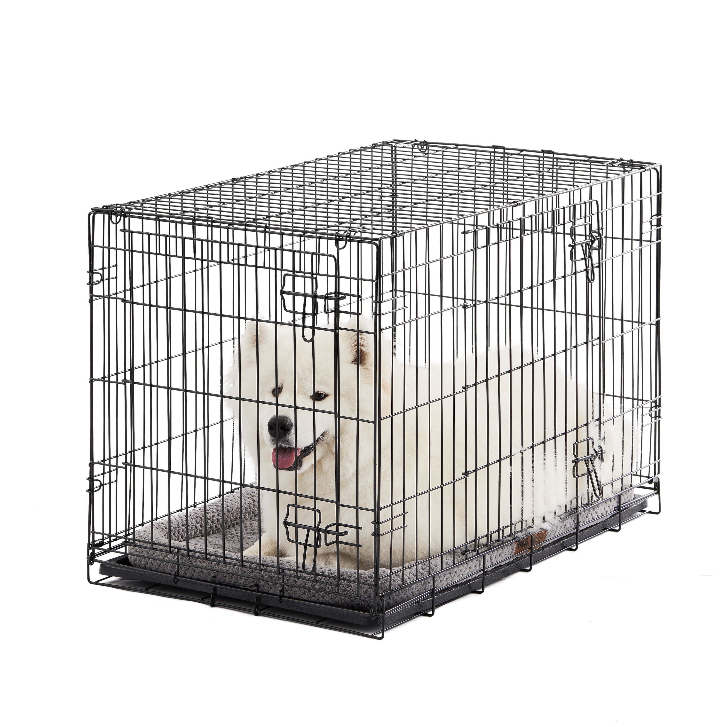 Vibrant Life Double-Door Folding Metal Wire Dog Crate with Divider and Tray, Large, 36"