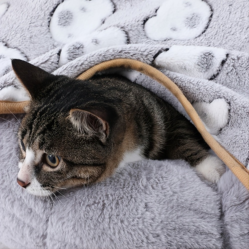 Warming Pet Pad Cartoon Paw Print Cat Warm Bed Plush Sleeping Pad For Small Puppy Dogs Kitten